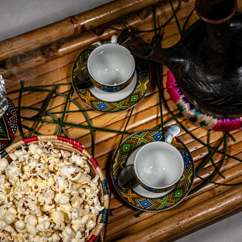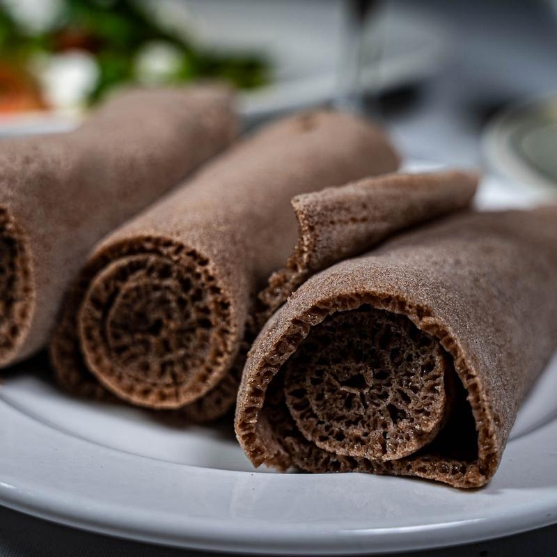 Ethiopians eat exclusively with their right hands, using pieces of Injera to pick up bites of entrees and side dishes.